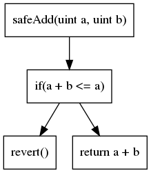 1function safeAdd(uint a, uint b) pure internal returns(uint){2 if(a + b <= a){3 revert();4 }5 return a + b;6}The corresponding AST is shown in: